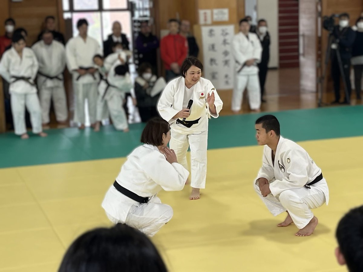 南信柔道飯田大会が開催。開会式後、金メダリスト谷本歩実さんの柔道教室を拝見。準備体操から技の指導まで楽しく分かりやすく、選手たちは目を輝かせて取り組んでいました。貴重な出会いが一生の宝になると感じました。
